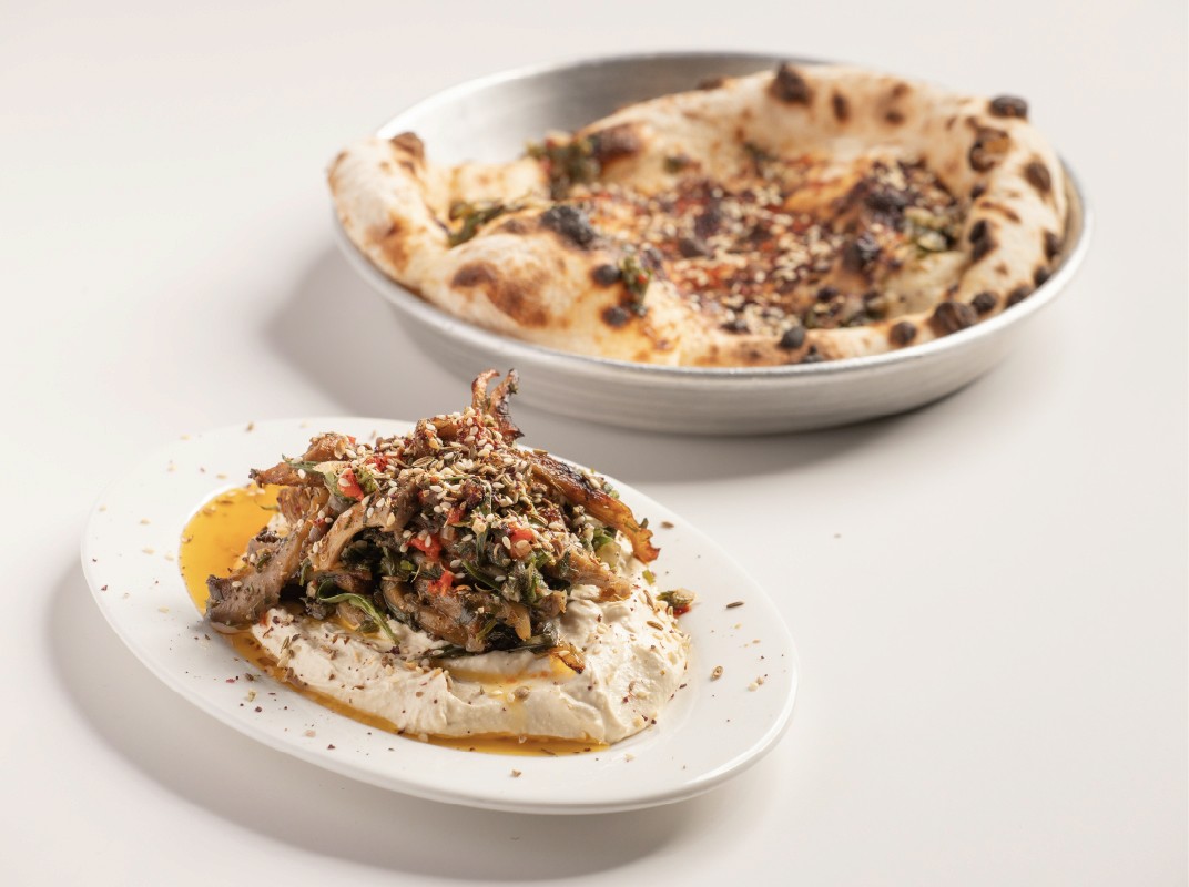 MUSHROOM, WHIPPED CHICKPEA, DUQQAH, HERB CHUTNEY, BARON BREAD