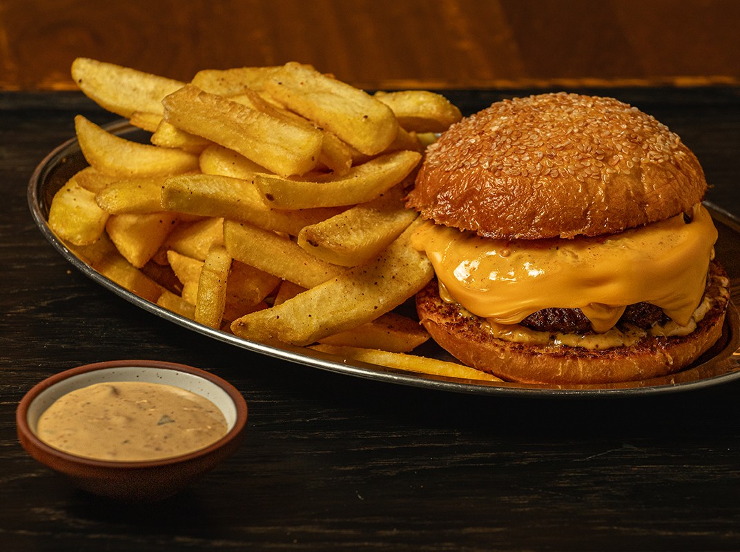 STEAK HACHE, ANGUS MINCE, BRIOCHE BUN, BARON SAUCE, CHEDDAR, FRIES