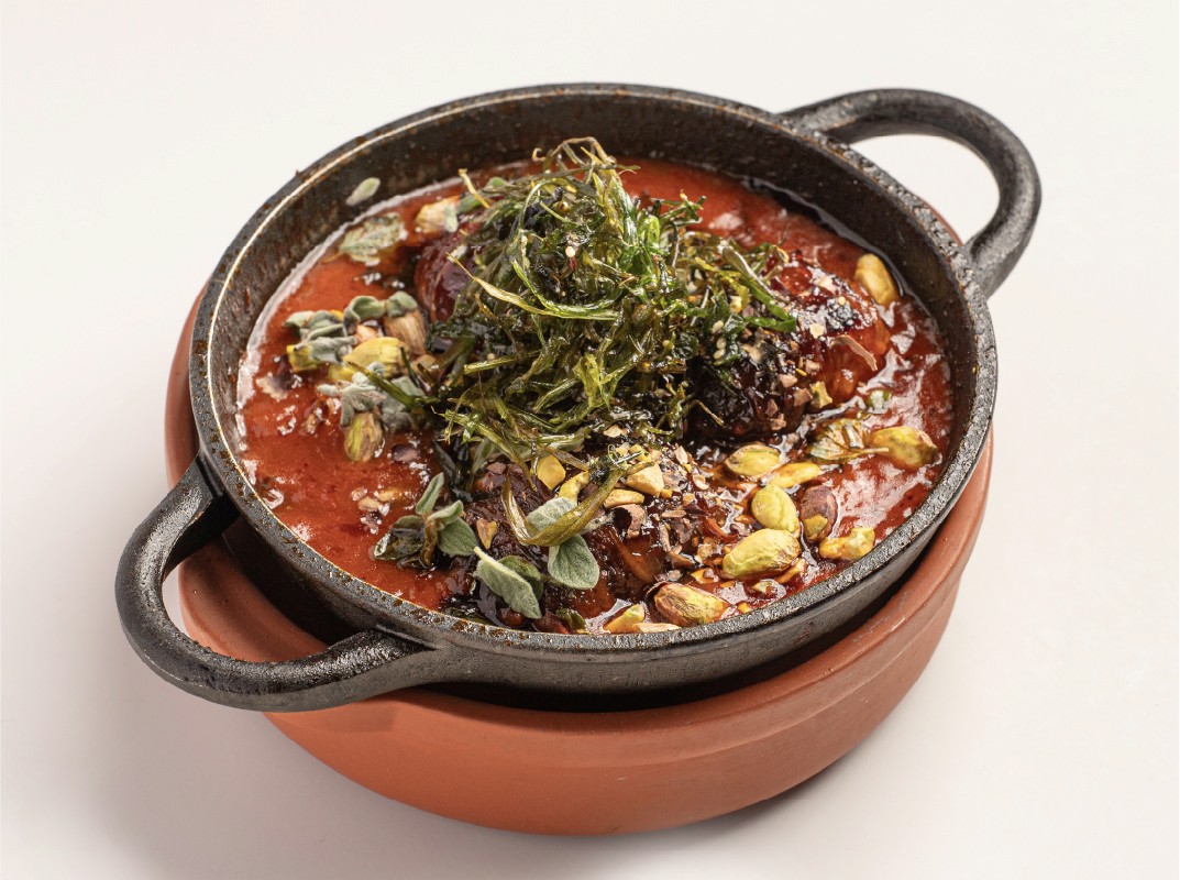 DATES, SOUJOUK, TOMATO, DIBS RUMMAN, PISTACHIO, CRISP HERBS