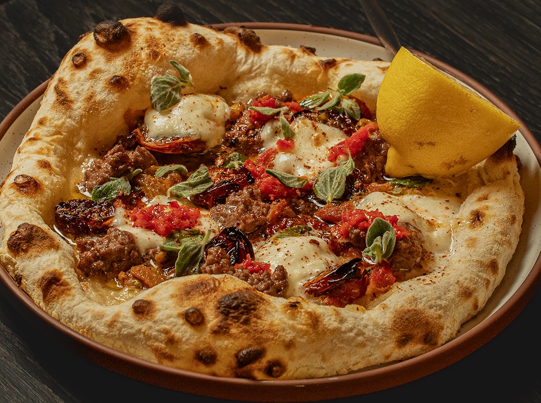 SOUTZOUKAKI, BEEF SAUSAGE, JIBNE, SOFT HERBS, MINT, LEMON