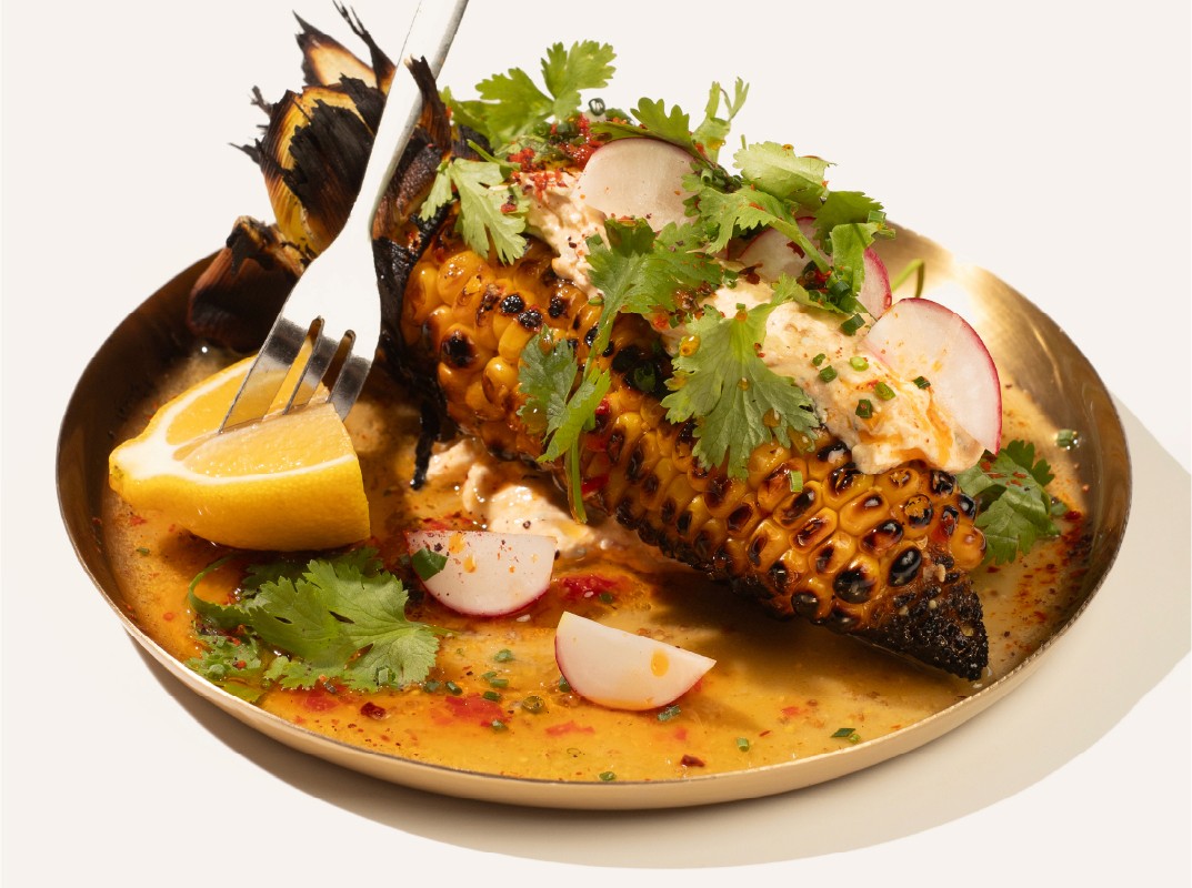 CORN, ROASTED, FETA, PEPPERS, SOFT HERBS, CHILLI, LEMON