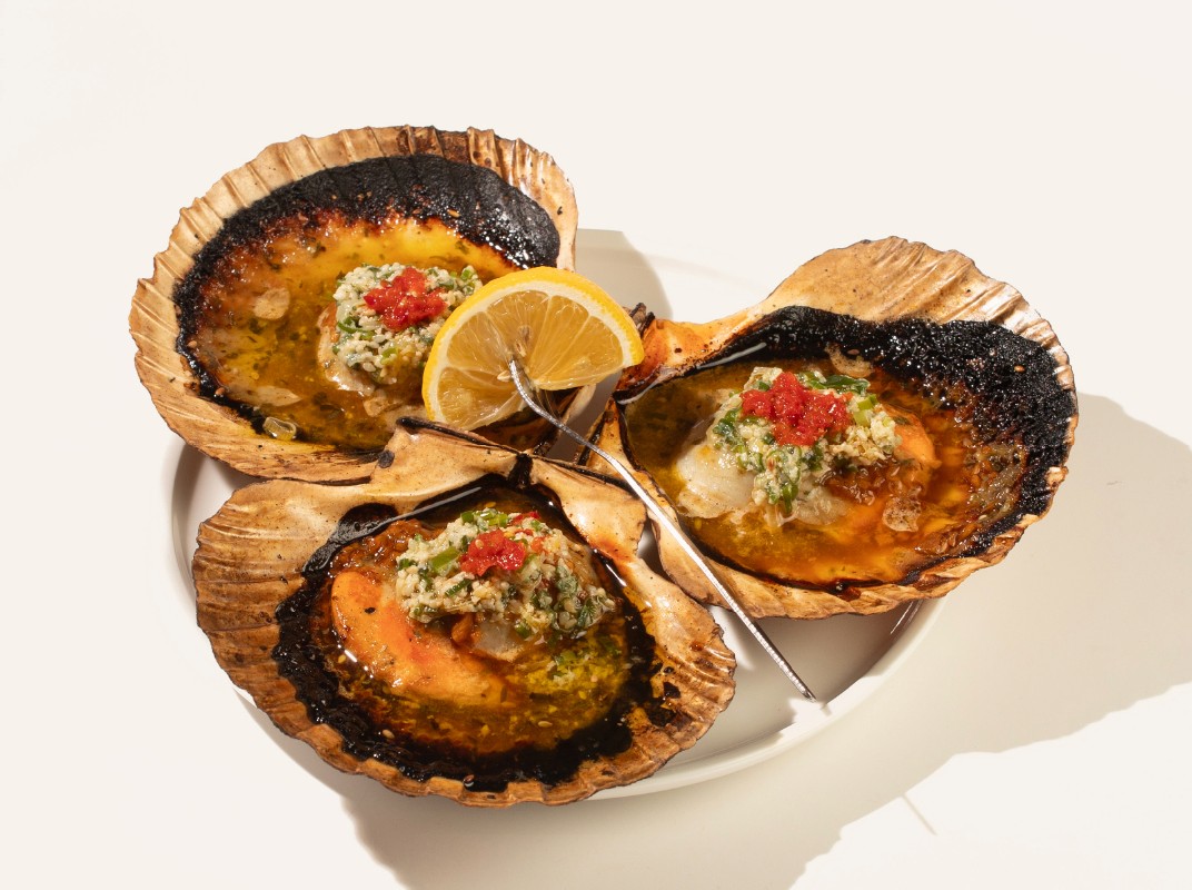 SCALLOP, ON-SHELL, MISO BUTTER, SOY-LEMON DRESSING, SCALLION-CHUTNEY, CHILLI