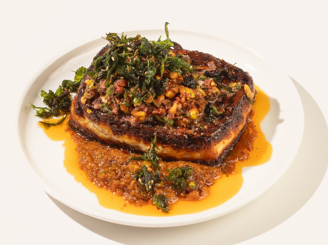 HALLOUMI, ROASTED, PISTACHIO, TOMATO CHUTNEY, ALLEPO PEPPER, CRISP HERBS
