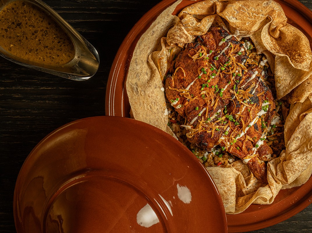 POULET, CHARGRILLED BABY CHICKEN, TOUM, DIRTY-RICE, MARKOUK