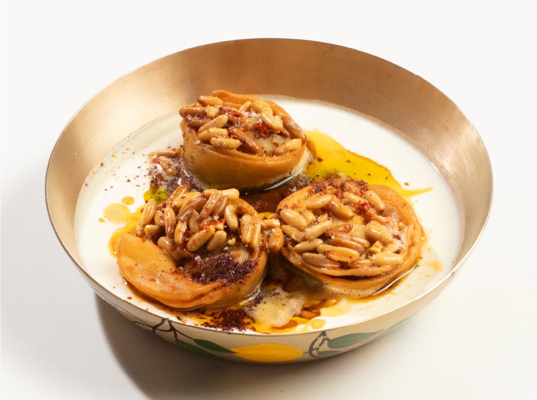 SHISH BARAK, BAHARAT BEEF DUMPLINGS, YOGHURT, TOMATO, PINE NUTS