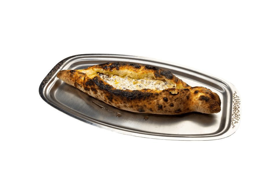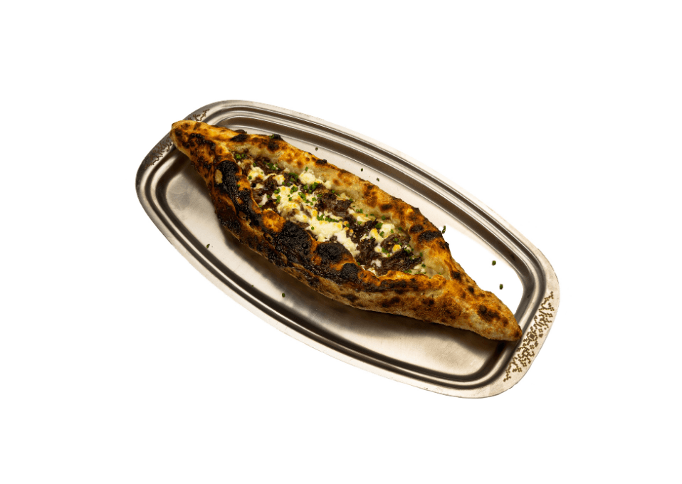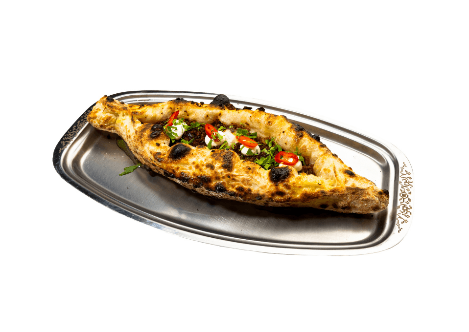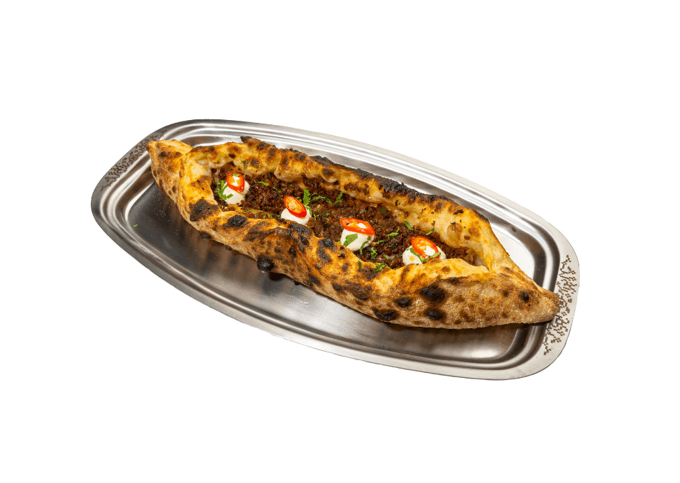 Lahmatzoun with beef and lamb mince, Graviera and yoghurt