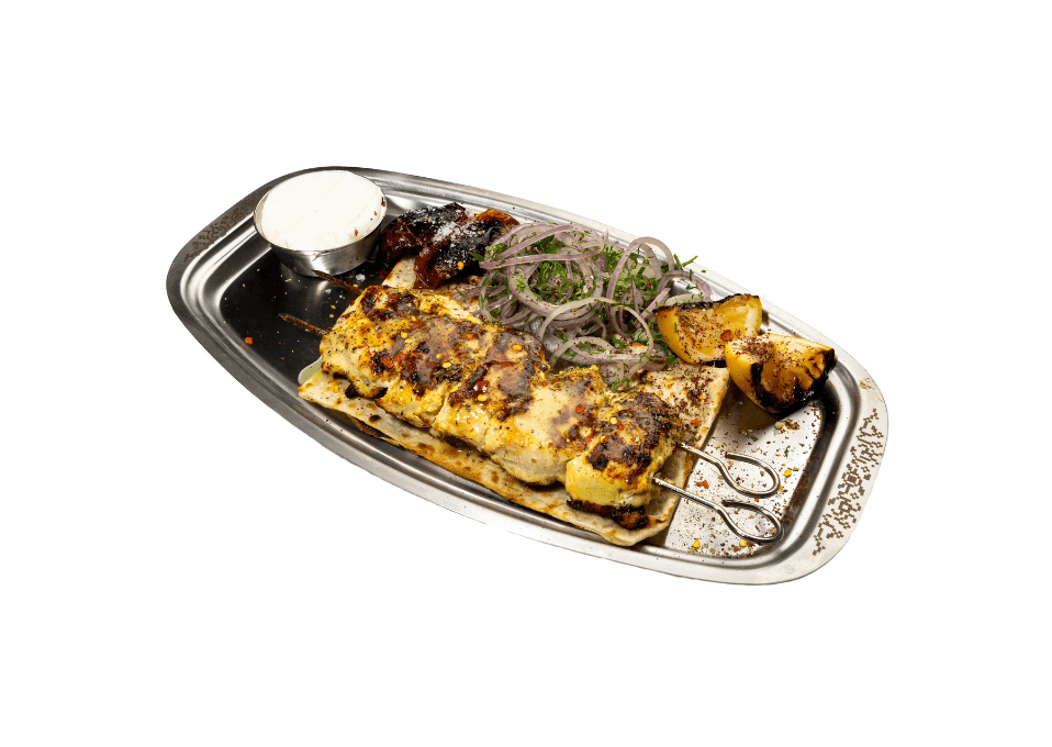 Chicken souvlaki with yoghurt and lemon-oil sauce