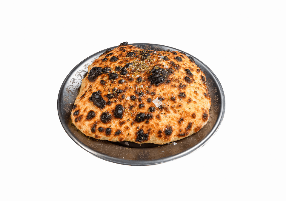 Sourdough flatbread with olive oil, oregano and fleur de sel