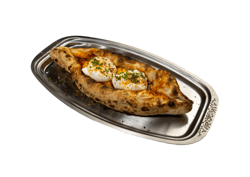 Poached eggs on sesame Kouloúri bagel with yoghurt and spicy butter