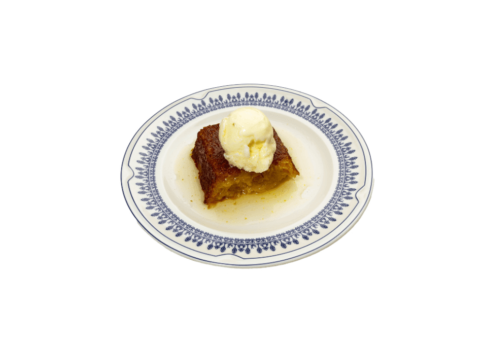 Orange phyllo pie served with vanilla ice cream