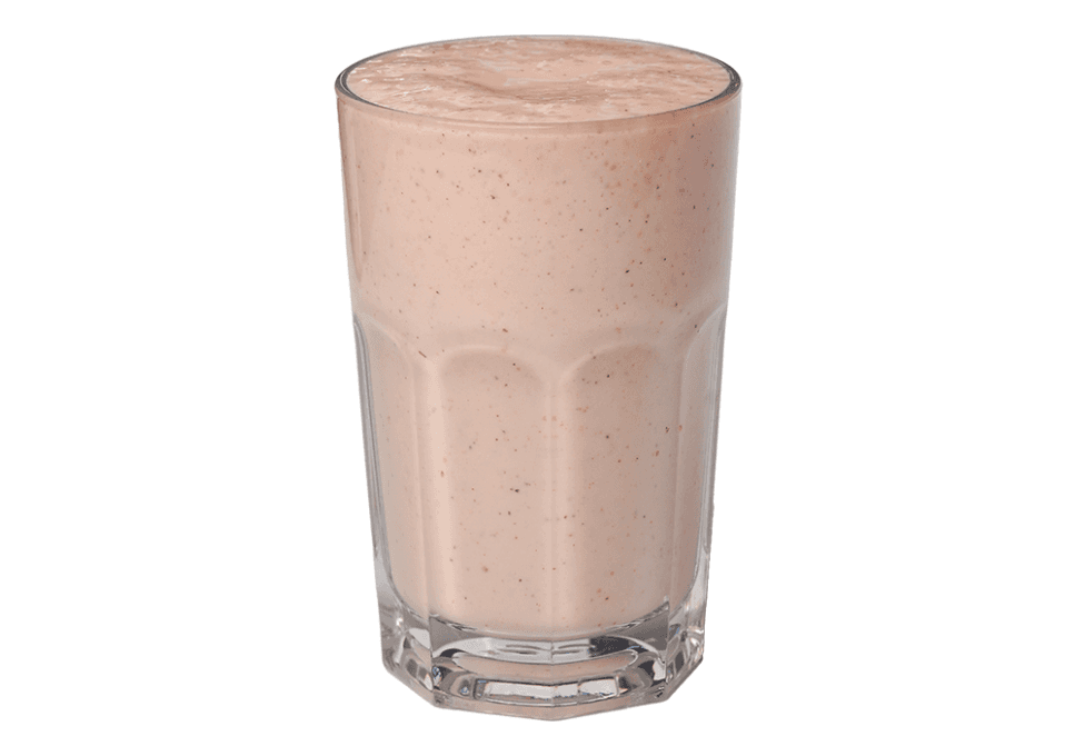 with dates, almond milk, tahini, peanutbutter, cocoa, oats, sunflower seeds, chia seeds & fruits