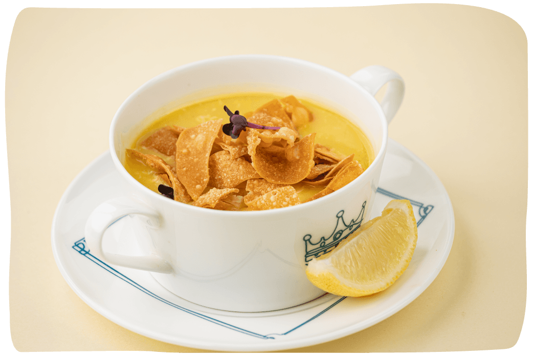 دجاج صغير مشوي متبل بالليمون، زعتر، ثوم، كونفيت الليمون، أعشاب دي بروفانس و عسل يقدم مع أرز أبيض