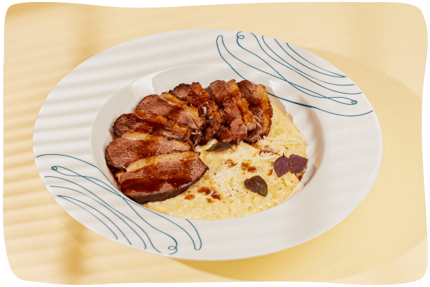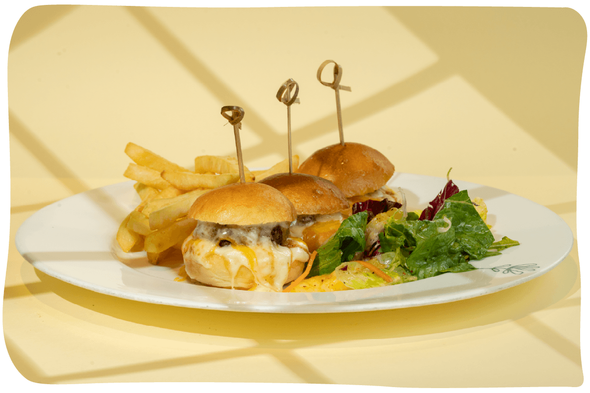 لحم انغوس مفروم مع جبنة الشيدر، صلصة خردل، جبنة الكريمة