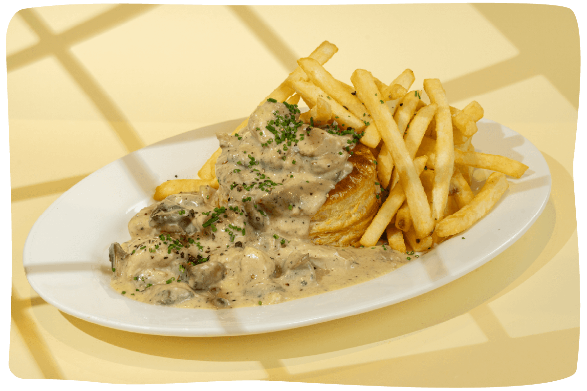 قشرة من المعجنات المورقة محشوة بصلصة الدجاج الكريمية مع الفطر