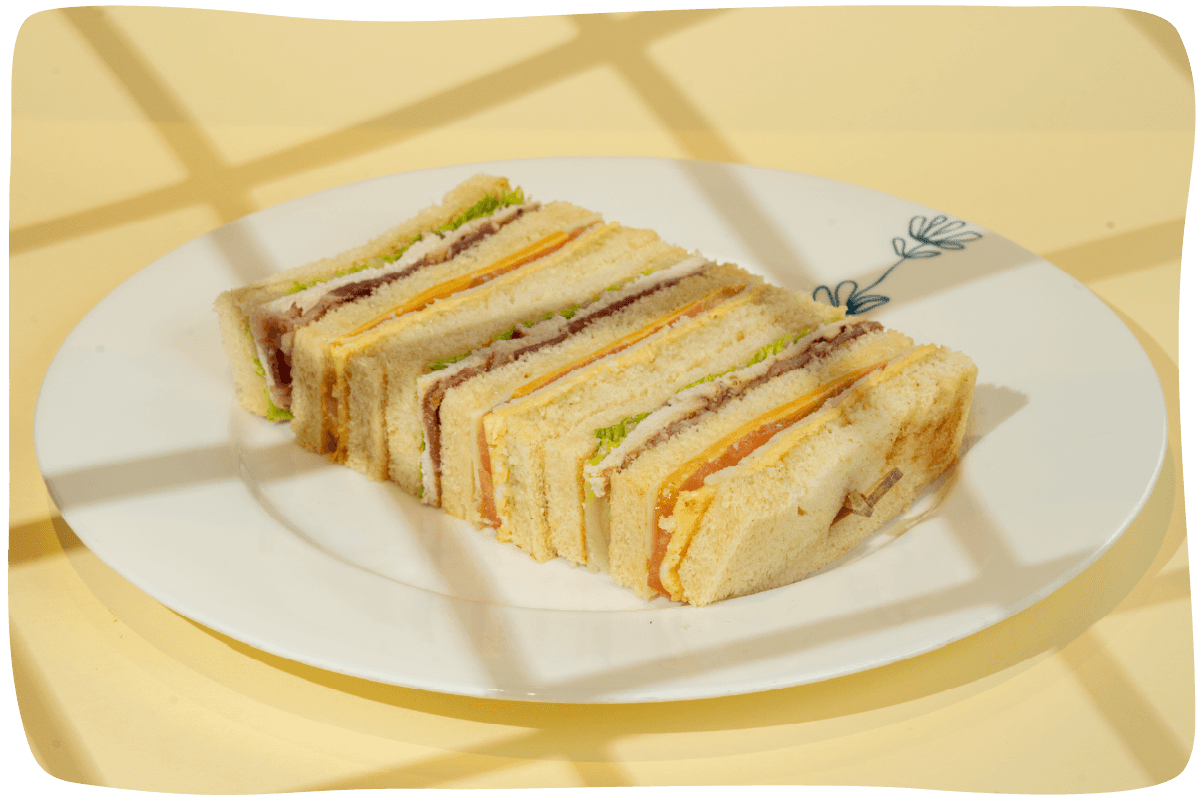 دجاج، بيض، جبنة الشيدر، جبنة الإمنتال، لحم مقدد حبش، طماطم، خس، وصلصة الهالبينو مايو.