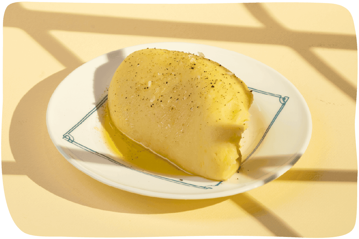 مكعبات من جبنة الكونتي المعتّقة، تُقدّم مع صوص مايونيز السريراتشا وكمية وفيرة من جبن البارميزان المبشور