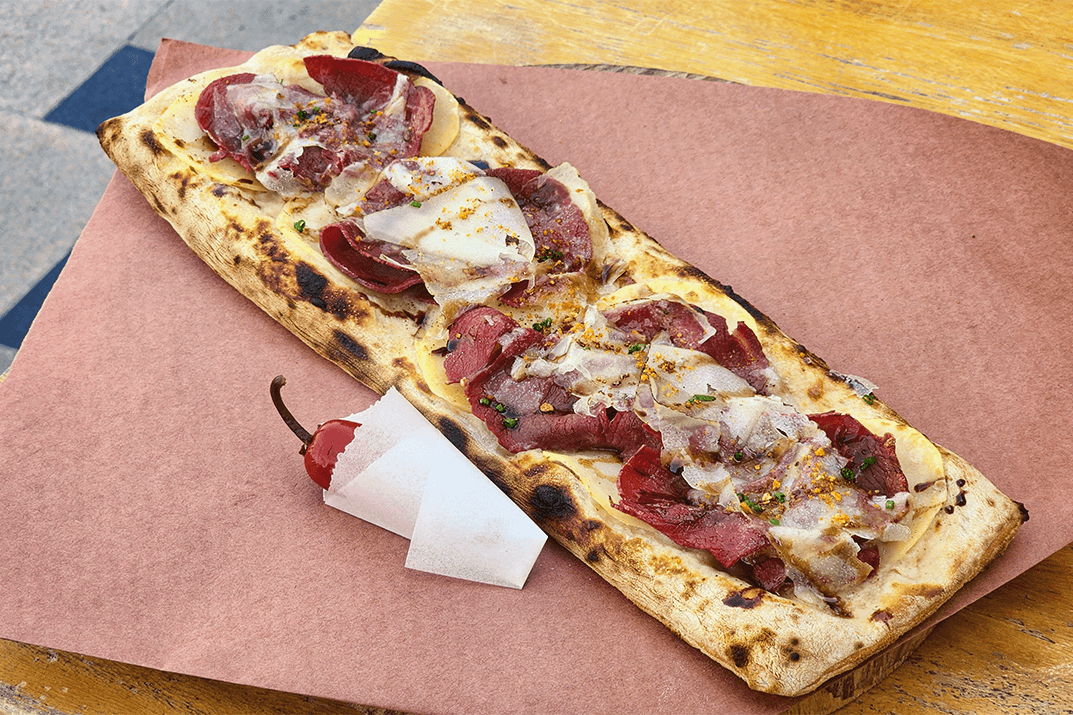 Bresaola,potato & manchego flat bread