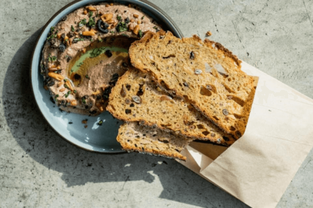 تغميسة فيتا وريكوتا مع مكسرات وأعشاب، تقدم مع خبز التنور