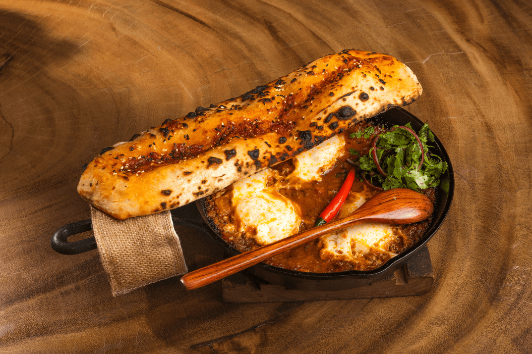 خبز باغيت مع لحم بقري وبيض وتشيميتشوري